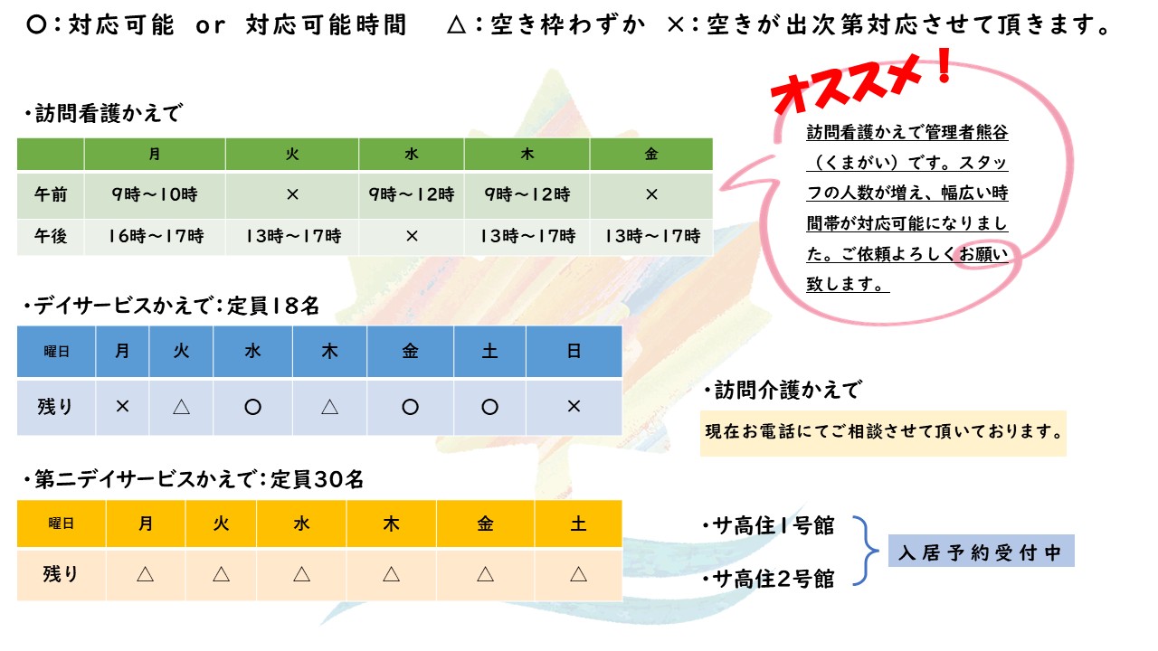 看護師、介護士により日々の健康を管理しております。入浴・更衣・排泄など直接身体をケアするサービスや掃除・洗濯など、ご利用者様の生活をサポートし、その人らしい生活のためのお手伝いに取り組んでいます。