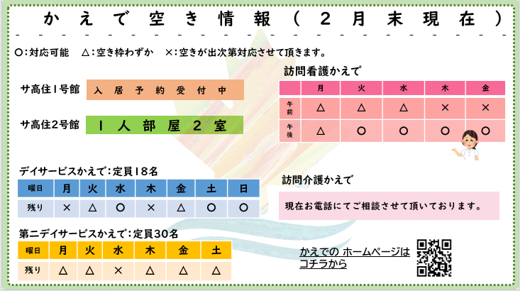 かえで空き情報(2026年23月2日現在)